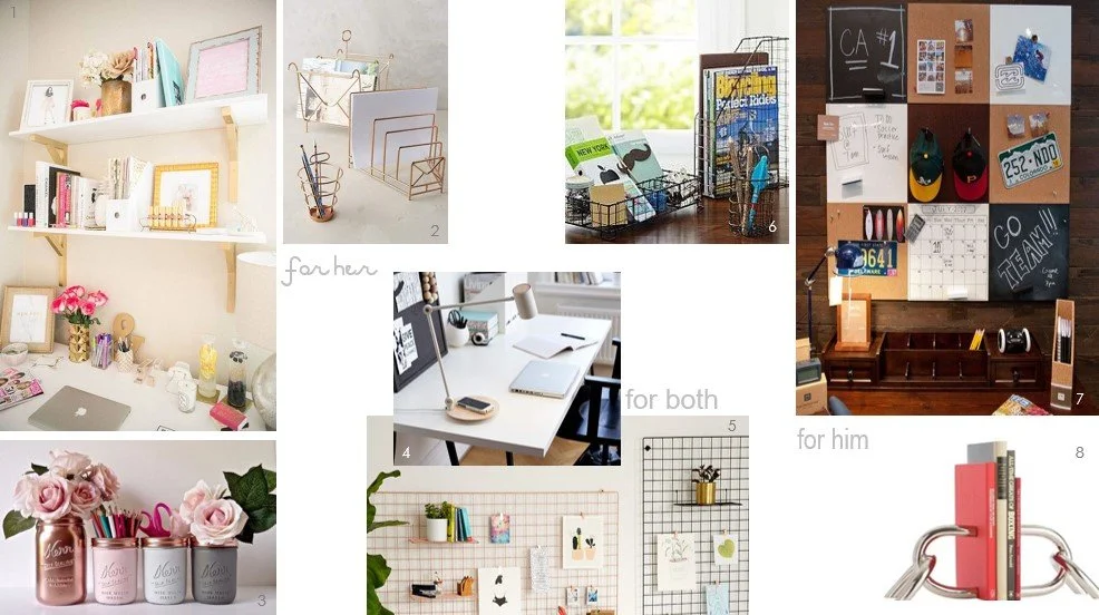 If you don’t want to do shelves or a cool pinboard above your desk, try some cool wire wall grids that are easy to use and remove.