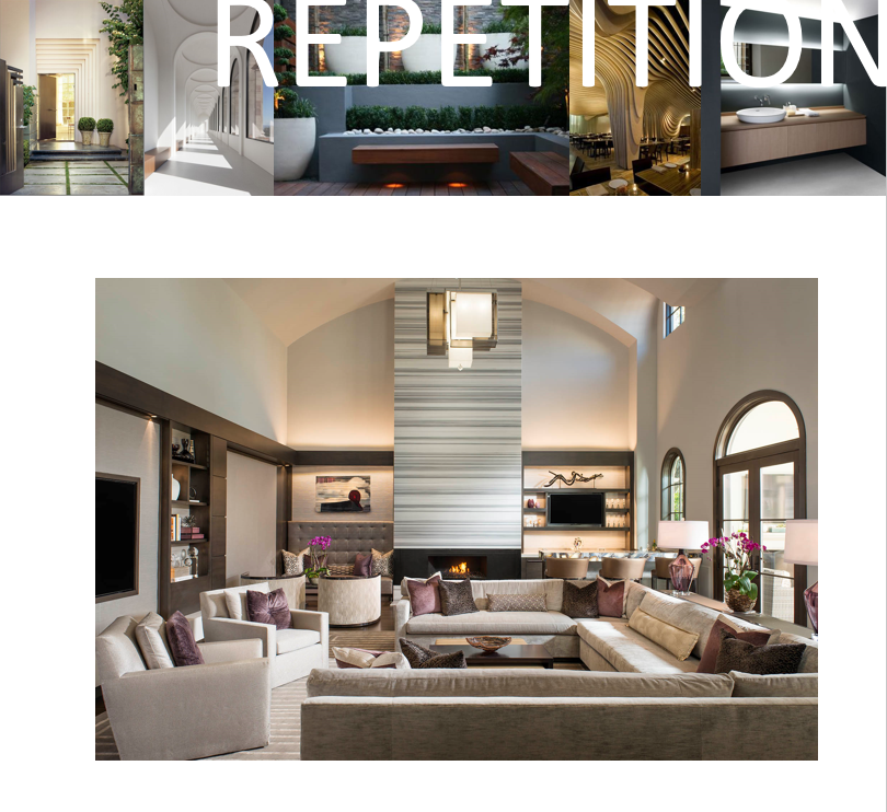 By repeating design elements you can create a sense of importance calling attention to a specific area such as the front entry, guiding people through a space, or it can be used to create a dramatic focal point like the fireplace we did in a recent project. Talk about a show stopper!